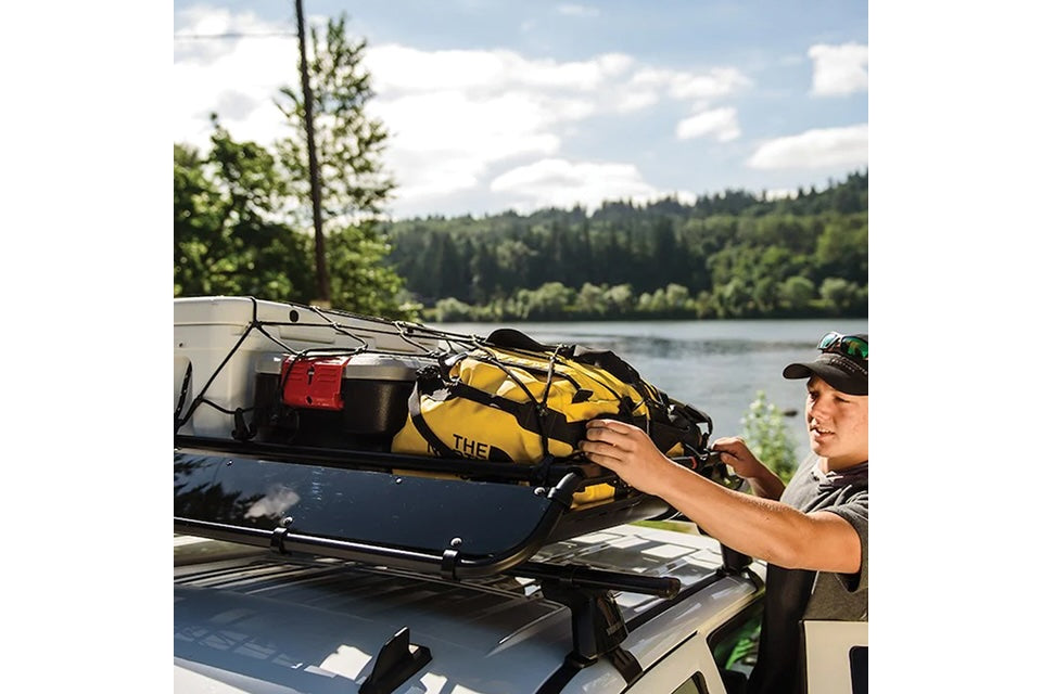 ルーフラックに新しいラインナップ、オフグリッドは高さをおさえたエアロダイナミックなデザイン。ベルト式のクイックリリースでラックの脱着も非常にスムーズ。アクセサリーバーも付属するため、オフグリッドの上にサイクルキャリア、カヤック・サーフボードキャリアを取付けることも可能。こちらはLサイズ。