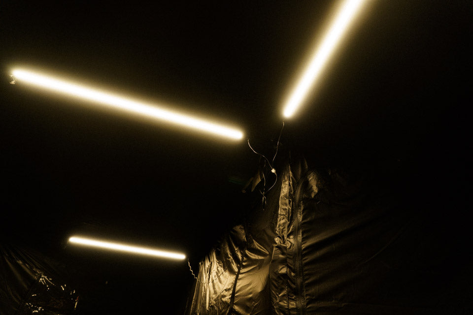ポール不要で風速20m/sまで耐えられる270°サイドオーニング。他社のサイドオーニングの耐風性は風速8m/s程度。このサイドオーニングは圧倒的な耐風性能を誇ります。LEDライトも標準装備。
